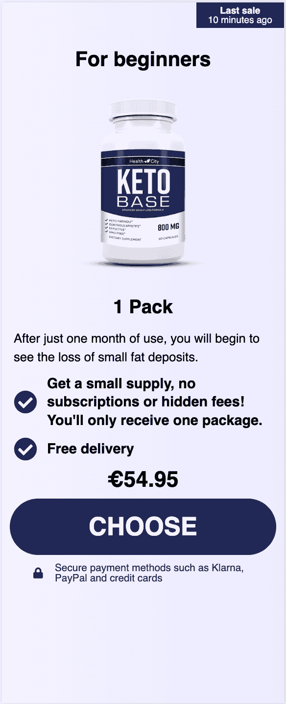 Keto Base products are dietary supplements meant to help you live a healthy life. They are not meant to diagnose, treat, cure, or stop illnesses. They shouldn't be used instead of a healthy, balanced, and varied diet. The website's content comes from various sources and is presented with care, but no medical or government body has approved it. Before taking any supplements, you should talk to a doctor or nurse, especially if you are pregnant, nursing, already have a medical condition or are taking other medicines. This ensures that the ingredients will work with your health needs and any treatments you are taking. Results may differ for each person, and our products are only for adults. Advertiser Disclosure:This site is an affiliate site and is in no way related to the official site.